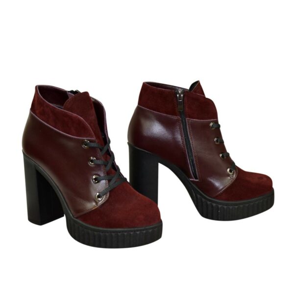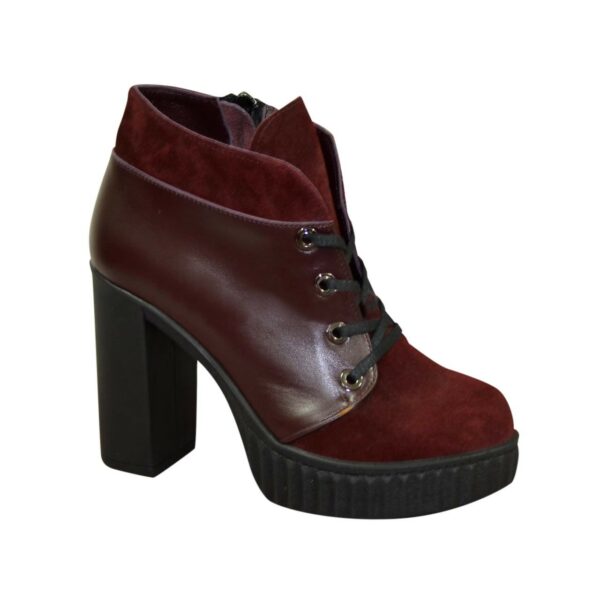Классические женские ботинки на широком стойком каблуке, изготовлены из натуральной замши и кожи бордового цвета. На шнуровке, благодаря которой регулируется подъем. Очень удобные, идеально сидящие на ножке – подчеркнут Вашу индивидуальность.