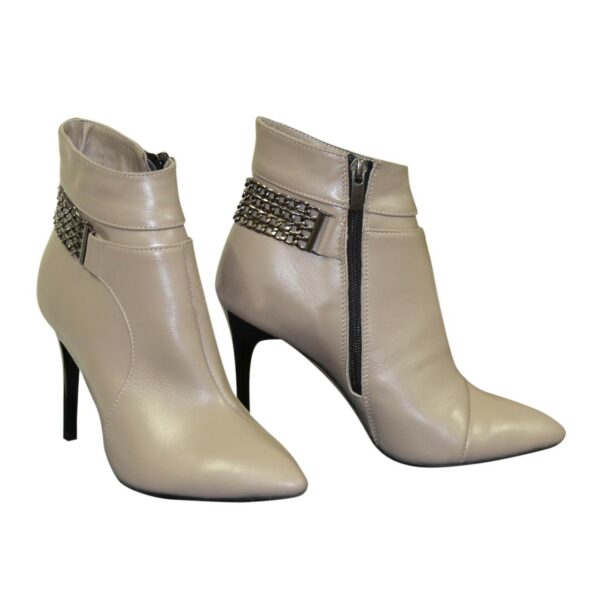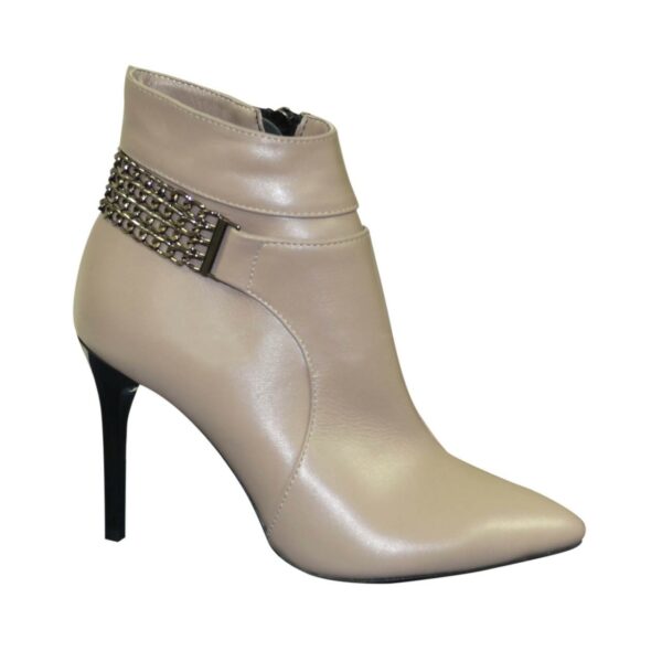 Модные классические женские ботинки на шпильке, изготовленные из натуральной кожи цвета визона. Украшенные цепью смотрятся элегантно. Очень удобные, идеально сидящие на ножке – подчеркнут вашу индивидуальность.