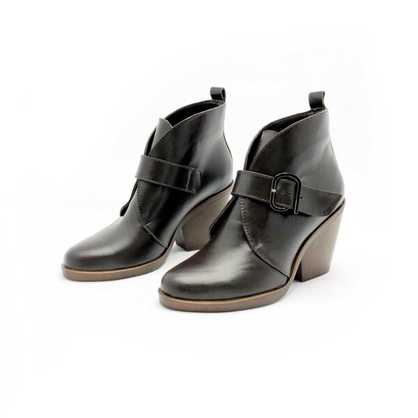 Классические женские ботинки казаки на стойком каблуке, изготовленные из натуральной кожи черного цвета. Подъем регулируется ремешком. Очень удобные, идеально сидящие на ножке.