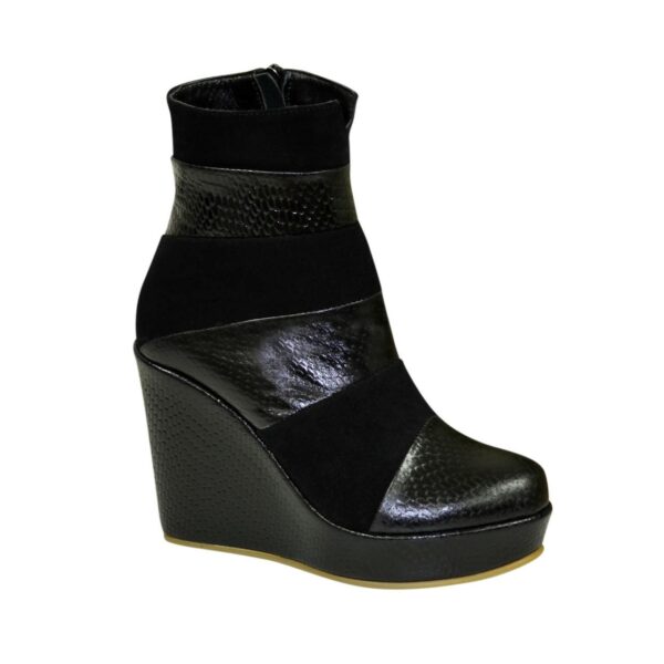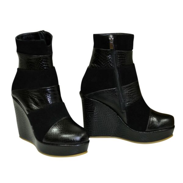 Ботинки женские на платформе изготовлены из натуральной кожи с тиснением "рептилии" и замши черного цвета. Незаменимы каждый день, очень удобны, идеально сидят на ножке – подчеркнут вашу индивидуальность.