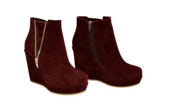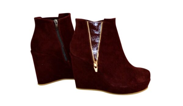 Стильные женские ботинки на высокой платформе изготовлены из натуральной замши, декорированы молнией и вставкой из натуральной кожи бордового цвета. Очень удобные, идеально сидящие на ножке.