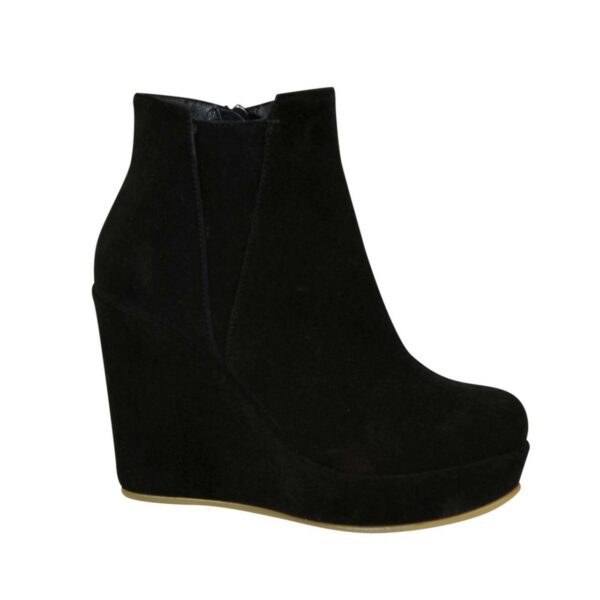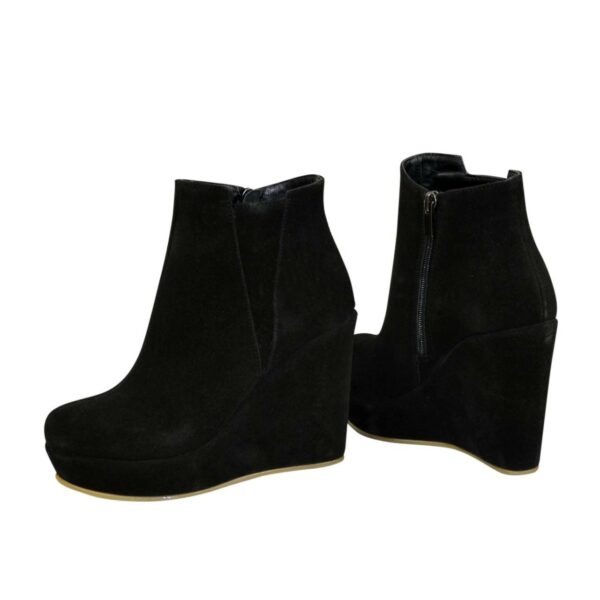 Стильные женские ботинки на высокой платформе изготовлены из натуральной замши черного цвета. Очень удобные, идеально сидящие на ножке.