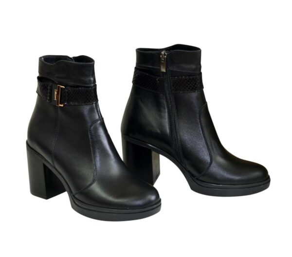 Элегантные классические женские ботинки на широком стойком каблуке, изготовленные из натуральной кожи черного цвета. Очень удобные, идеально сидящие на ножке.