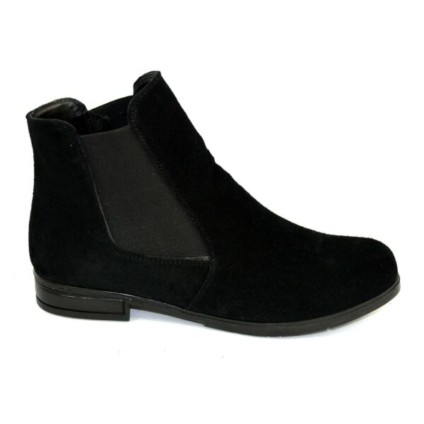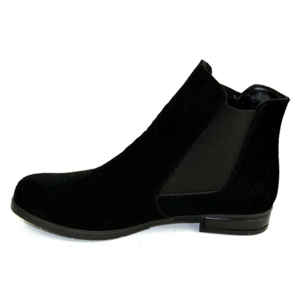Классические женские ботинки на небольшом каблуке, изготовленные из натуральной замши черного цвета. Свободного одевания, благодаря резинкам регулируется подъем. Очень удобные, идеально сидящие на ножке.