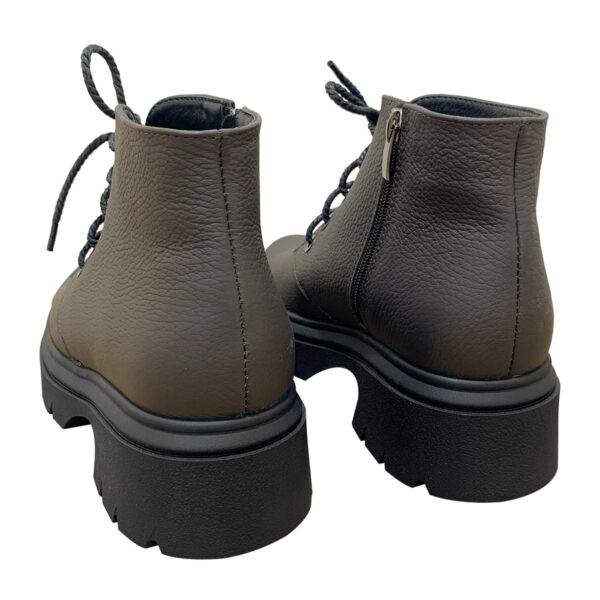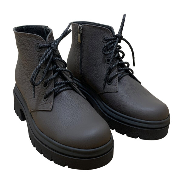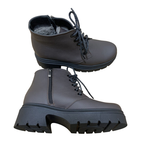Классические женские ботинки на утолщенной тракторной подошве изготовлены из натуральной кожи коричневого цвета. С молнией и шнуровкой благодаря которой регулируется подъем. Очень удобные, идеально сидят на ножке.