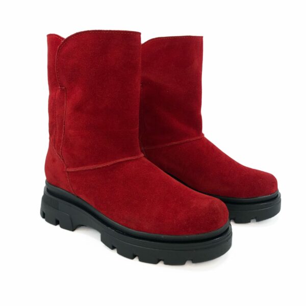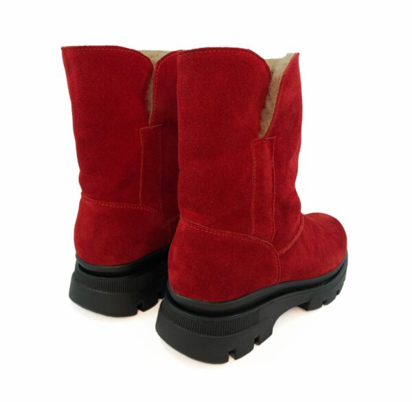 Зимние угги женские изготовлены из натуральной замши красного цвета на утолщенной подошве. Внутренняя часть изготовлена из меха полушерсть 70%. по всей высоте сапоги, очень удобны, идеально сидят на ножке. Полномерные соответствуют стандартной размерной сетке. Возможен отшив в коже и замши разных цветов – учитываем любые пожелания.