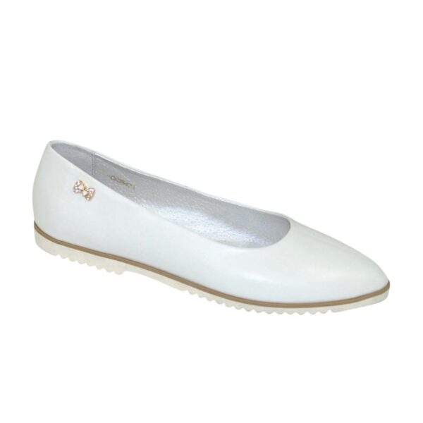 Туфли-балетки женские в классическом стиле из натуральной гладкой кожи белого цвета декорированы фурнитурой. Стелька кожа. Легкие и удобные оригинальная пара станет настоящим модным спасением для ваших весенне-летних образов. Соответствуют стандартной размерной сетке. Возможен отшив в коже, замши разных цветов. Обратите внимание, что у нас работает услуга индивидуальное изготовление. С помощью этой услуги можно создать маленькую коллекцию, используя свои любимые цвета. ТМ zlata-studio найдем подход к каждому клиенту.
