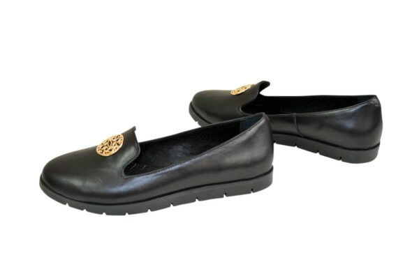 Туфли-мокасины из натуральной гладкой кожи благородного черного цвета на утолщенной подошве декорированы фурнитурой. Легкие и удобные подойдут для повседневной носки. Обувь такого плана подходит всем без исключения. Полномерные, соответствуют стандартной сетке размера. Возможен отшив в коже, замши разных цветов. Обратите внимание, что у нас работает услуга "Индивидуальное изготовление". С помощью этой услуги можно создать маленькую коллекцию, используя свои любимые цвета. ТМ zlata-studio найдем подход к любому клиенту