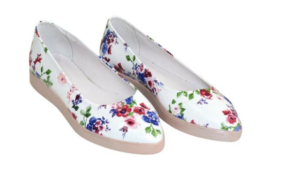 Женские туфли-балетки из натуральной кожи белого цвета с цветочным принтом в классическом стиле с острым носком. Высота подошвы 2 см. Легкие и удобные подойдут для повседневной носки. Обувь такого плана подходит всем без исключения. Соответствуют стандартной размерной сетке. Возможен отшив в коже, замши разных цветов. Обратите внимание, что у нас работает услуга индивидуальное изготовление. С помощью этой услуги можно создать маленькую коллекцию, используя свои любимые цвета. Только мы – ТМ zlata-studio найдем подход к любому клиенту.