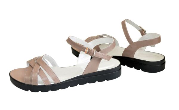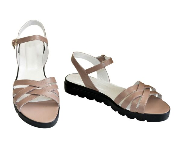 Легкие летние босоножки на сплошной подошве из натуральной кожи цвета визон. Стелька обтянута светлой кожей. Застежка регулирует высоту подъема. Полномерные соответствуют стандартной сетке размера. Возможен отшив в коже, замши разных цветов.