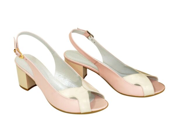 Очень удобны женские босоножки из натуральной кожи цвета пудра и белый, на стойком подборе 6.5 см. Благодаря дополнительной фиксации голеностопа их удобно носить. Полномерные соответствуют стандартной сетке размера. Возможен отшив в коже, замши разных цветов.