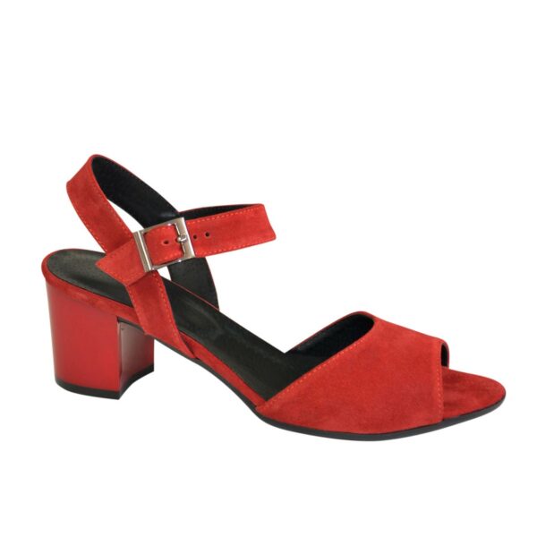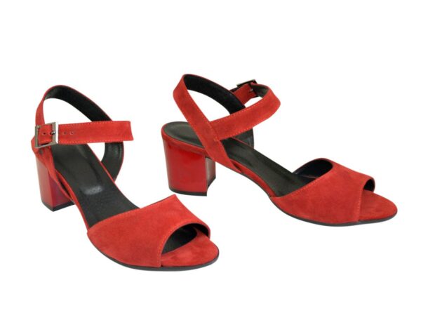 Очень удобные женские босоножки из натуральной замши красного цвета на стойком подборе 6.5 см соответствуют стандартной размерной сетке. Возможен отшив в коже, замши разных цветов.