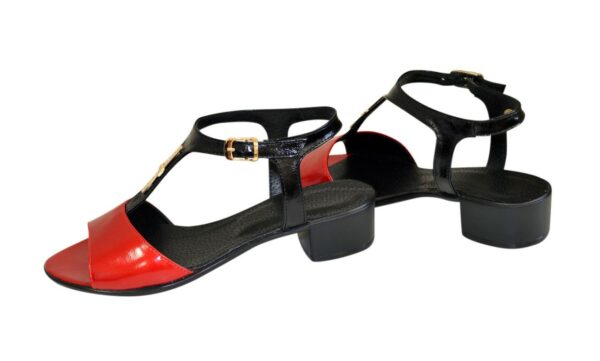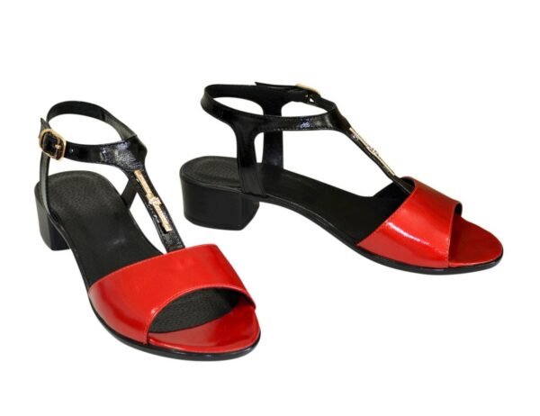 Очень удобны женские босоножки из натуральной лаковой кожи черного и красного цвета, декорированные фурнитурой, на низком подборе 3.5 см. Благодаря дополнительной фиксации голеностопа их удобно носить. Полномерные соответствуют стандартной сетке размера. Возможен отшив в коже, замши разных цветов.