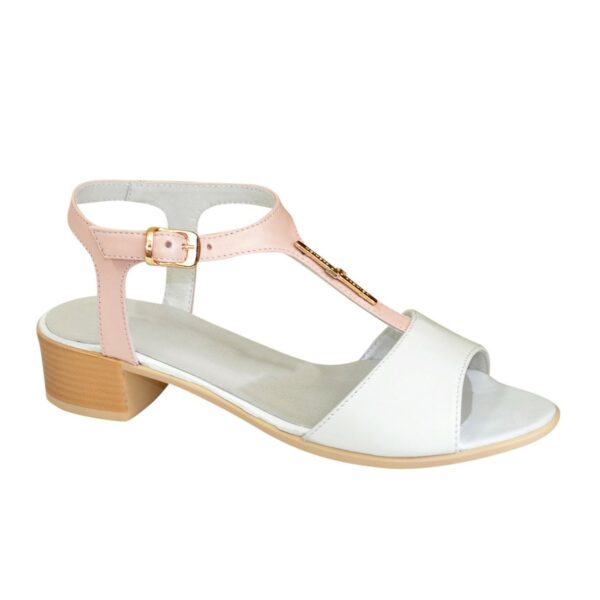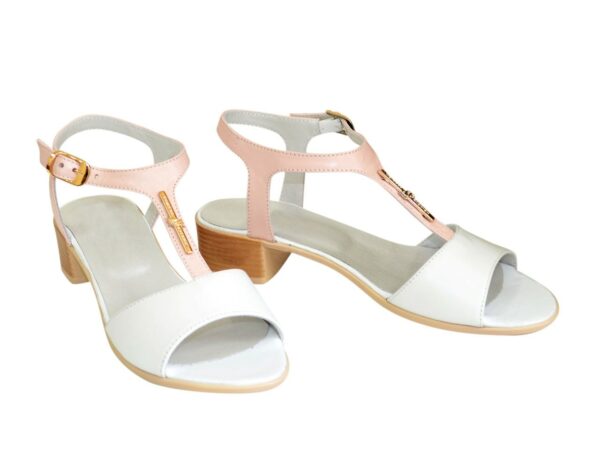 Очень удобные женские босоножки из натуральной кожи цвет белый+пудрая, на низком каблуке 3.5 см. Благодаря дополнительной фиксации голеностопа их удобно носить. Полномерные соответствуют стандартной сетке размера. Возможен отшив в коже, замши разных цветов.