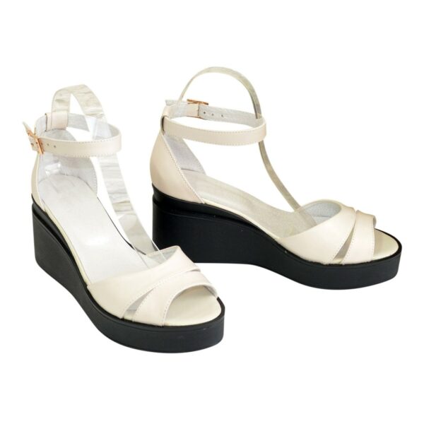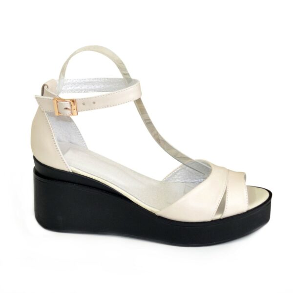 Удобные женские босоножки с задником на стойкой танкетке, высота платформы 7,5 см., впереди 2,5 см из натуральной кожи бежевого цвета, полномерные соответствуют стандартной размерной сетке. Мягкая стелька обтянута светлой кожей. Возможен отшив в коже, замши разных цветов.