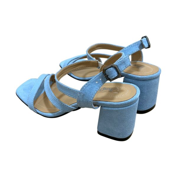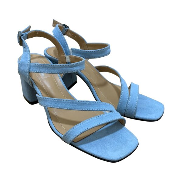 Молодежные женские босоножки на не высоком стойком обтянутом замше каблуке 6.5 см. Выполнены из натуральной замши голубого цвета. Ручная работа с использованием исключительно натуральных материалов высокого качества. Соответствуют стандартной сетке размера. Рассчитаны на стандартную полноту бедра. Возможен отшив в коже, замши разных цветов.