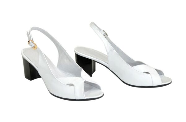 Очень удобны женские босоножки из натуральной кожи белого цвета, на стойком подборе 6.5 см. Благодаря дополнительной фиксации голеностопа их удобно носить. Полномерные соответствуют стандартной сетке размера. Возможен отшив в коже, замши разных цветов.