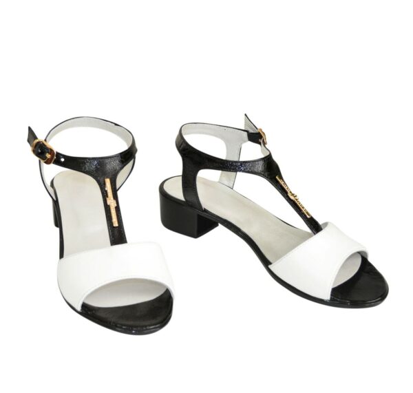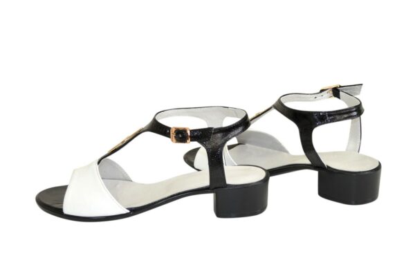 Очень удобны женские босоножки из натуральной кожи белого цвета и лаковой кожи черного цвета, на низком каблуке 3.5 см. Благодаря дополнительной фиксации голеностопа их удобно носить. Полномерные соответствуют стандартной сетке размера. Возможен отшив в коже, замши разных цветов.