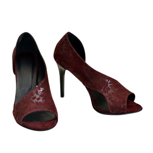 Элегантные женские босоножки на шпильке 9.5 см. подошва кожаный блок. Из натуральной замши с лазерным напылением, бордового цвета. Полномерные, рассчитанные на стандартную полноту бедра. Соответствуют стандартной размерной сетке. Возможен отшив в коже, замши разных цветов.
