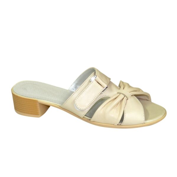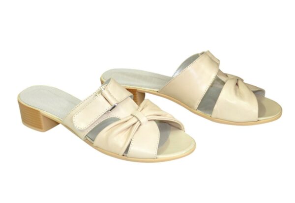 Удобные шлепки на легкой полиуретановой подошве каблук 3.5см, из натуральной кожи бежевого цвета, полномерные соответствуют стандартной сетке. Подъем регулируется липучкой, подойдет на полную ногу. Возможен отшив в коже, замши разных цветов.