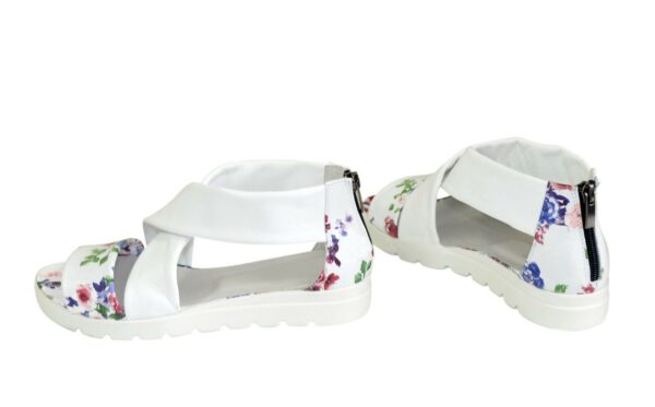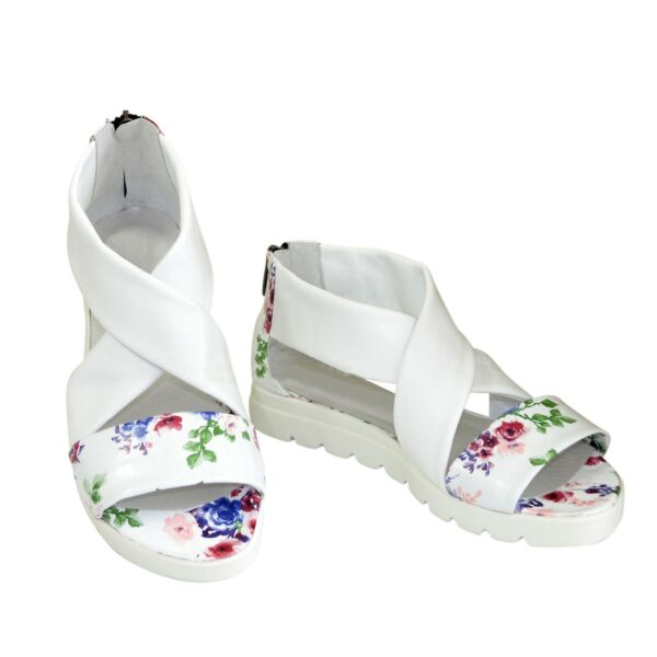 Стильные женские босоножки римлянки из натуральной кожи белые + цветы, на утолщенной подошве, с молнией. Благодаря дополнительной фиксации голеностопа их удобно носить и преодолевать в них длительные дистанции. Полномерные соответствуют стандартной сетке размера. Возможен отшив в коже, замши разных цветов.