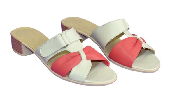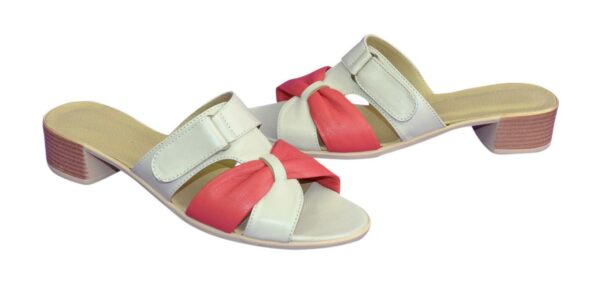 Удобные шлепки на легкой полиуретановой подошве каблук 3.5см, из натуральной кожи кораллового и белого цвета, полномерные соответствуют стандартной сетке. Подъем регулируется липучкой, подойдет на полную ногу. Возможен отшив в коже, замши разных цветов.