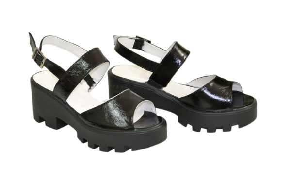 Стильные женские босоножки из натуральной лаковой кожи на удобной танкетке. Высота платформы 5,5 см, подошвы – 3 см . полномерные соответствуют стандартной сетке размера. Стелька обтянута светлой кожей. Возможен отшив в коже, замши разных цветов.
