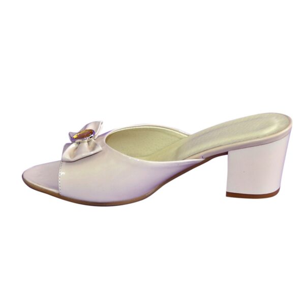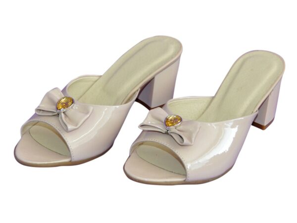 Элегантные сабо, из натуральной лаковой кожи бежевого цвета, с декорацией из банта и фурнитуры, стойкой подошвой с лаковым подбором 5.5 см. представляет собой резинку, полномерную соответствующую стандартной размерной сетке. Возможен отшив в коже, замши разных цветов.