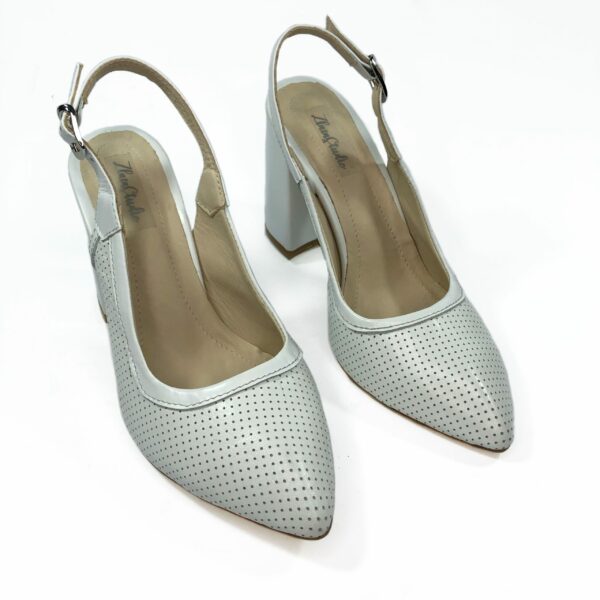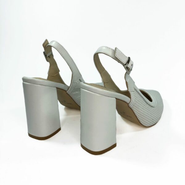 Изящные женские босоножки-туфли с острым носком на обтяжном каблуке 9.5 см. подошва блочная. Из натуральной кожи белого цвета. Полномерные, рассчитанные на стандартную полноту бедра. Соответствуют стандартной размерной сетке. Возможен отшив в коже, замши разных цветов.