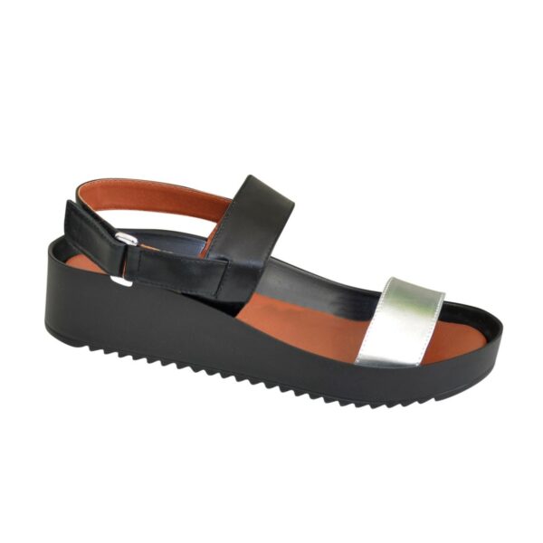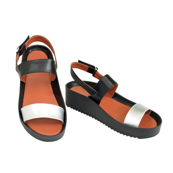 Очень удобны женские босоножки из натуральной кожи черного и серебристого цвета на утолщенной подошве. Благодаря дополнительной фиксации голеностопа их удобно носить. Стелька обтянута кожей. Полномерные соответствуют стандартной сетке размера. Возможен отшив в коже, замши разных цветов.