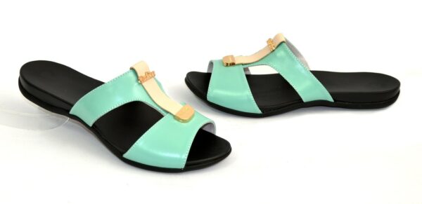 Летние шлепки на легкой полиуретановой подошве, из натуральной кожи мятного и бежевого цвета, с декорацией из фурнитуры, полномерные соответствуют стандартной размерной сетке. Возможен отшив в коже, замши разных цветов.