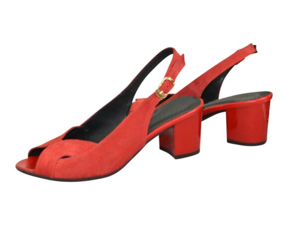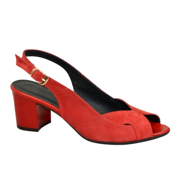 Очень удобны женские босоножки из натуральной замши красного цвета, на стойком подборе 6.5 см. Благодаря дополнительной фиксации голеностопа их удобно носить. Полномерные соответствуют стандартной сетке размера. Возможен отшив в коже, замши разных цветов.