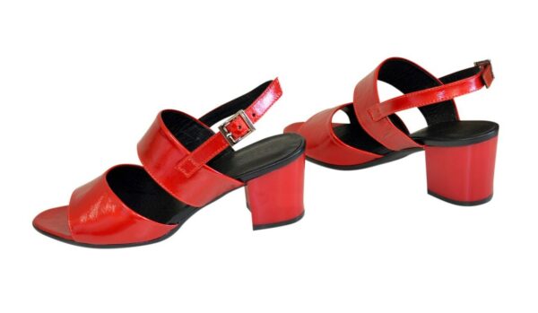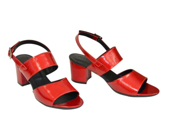 Очень удобны женские босоножки из натуральной лаковой кожи красного цвета на стойком подборе 6.5 см. Полномерные соответствуют стандартной сетке. Эта модель обуви максимально комфортно сидит на ноге. Благодаря дополнительной фиксации голеностопа их удобно носить и преодолевать в них длительные дистанции. Возможен отшив в коже, замши разных цветов.