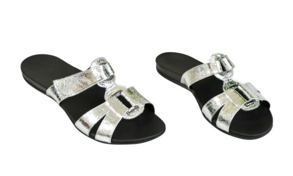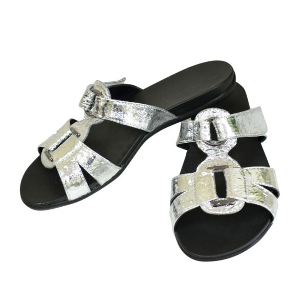 Удобные шлепки на легкой полиуретановой подошве из натуральной кожи серебряного цвета, полномерные соответствуют стандартной размерной сетке. Подъем регулируется липучкой, подойдет на полную ногу. Возможен отшив в коже, замши разных цветов.