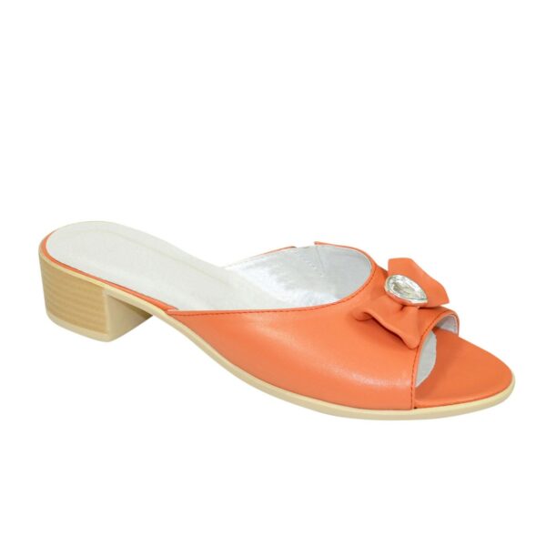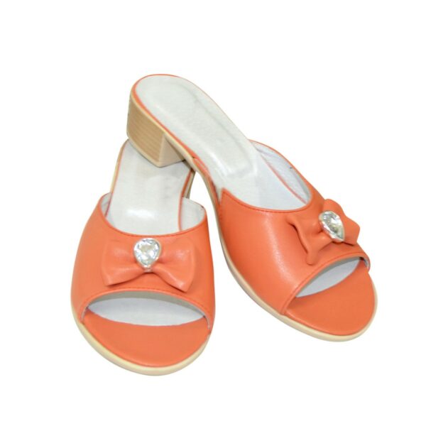 Элегантные сабо из натуральной кожи кораллового цвета, с декорацией из банта и фурнитуры, на облегченной полиуретановой подошве с каблуком 3.5см. с резинкой, полномерные соответствуют стандартной сетке размера. Возможен отшив в коже, замши разных цветов.