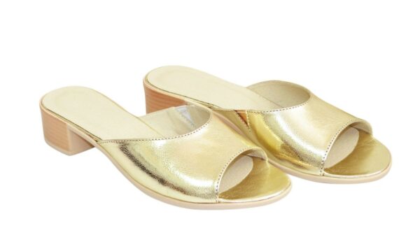 Элегантные сабо из натуральной кожи золотистого цвета, на облегченной полиуретановой подошве с каблуком 3.5см. с резинкой, полномерные соответствуют стандартной сетке размера. Возможен отшив в коже, замши разных цветов.