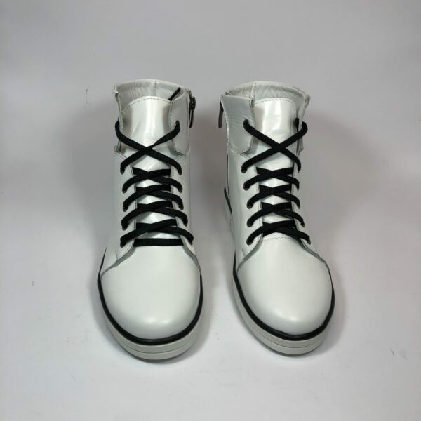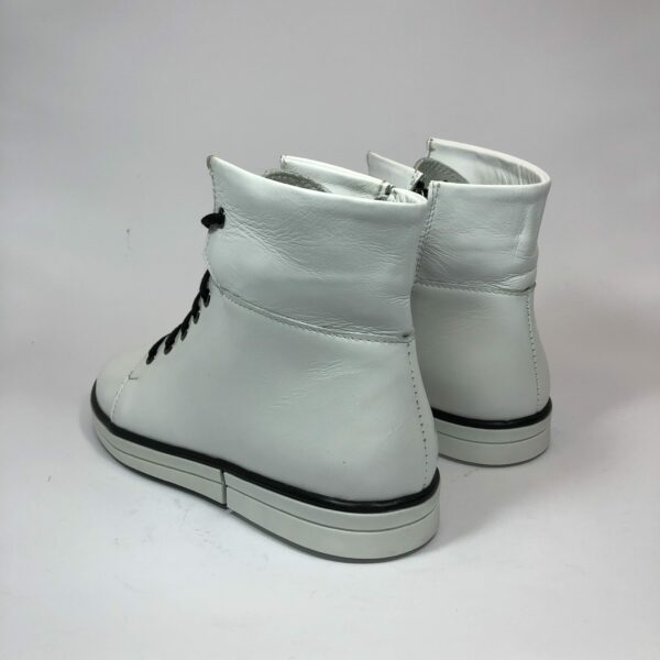 Модные стильные женские ботинки на утолщенной подошве, сделанные из натуральной кожи белого цвета. С молнией и шнуровкой, благодаря которой регулируется подъем. Очень удобные, идеально сидящие на ножке – подчеркнут вашу индивидуальность.