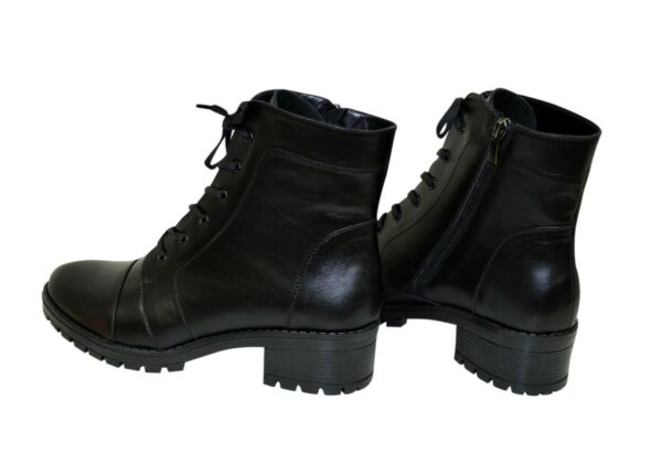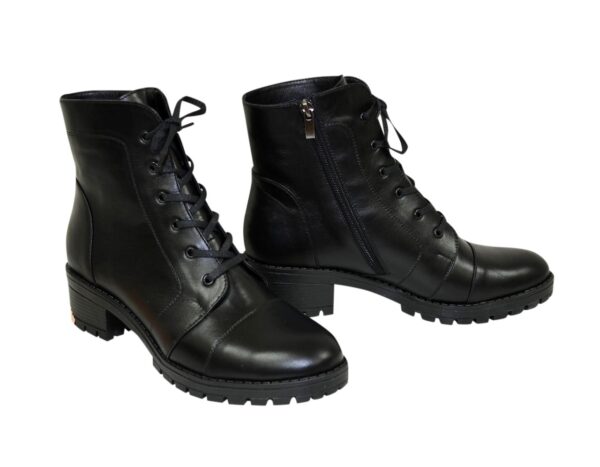Классические женские ботинки на широком каблуке, изготовленные из натуральной кожи черного цвета. С молнией и шнуровкой, благодаря которой регулируется подъем. Очень удобные, идеально сидящие на ножке.