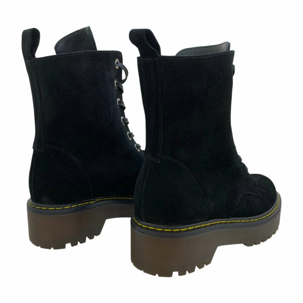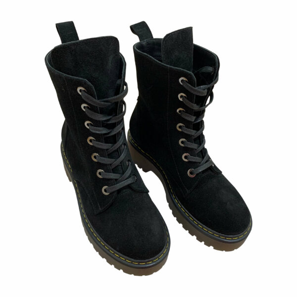 Молодежные женские ботинки на стильной подошве изготовлены из натуральной черной замши. На шнуровке. Очень удобные, идеально сидящие на ножке.