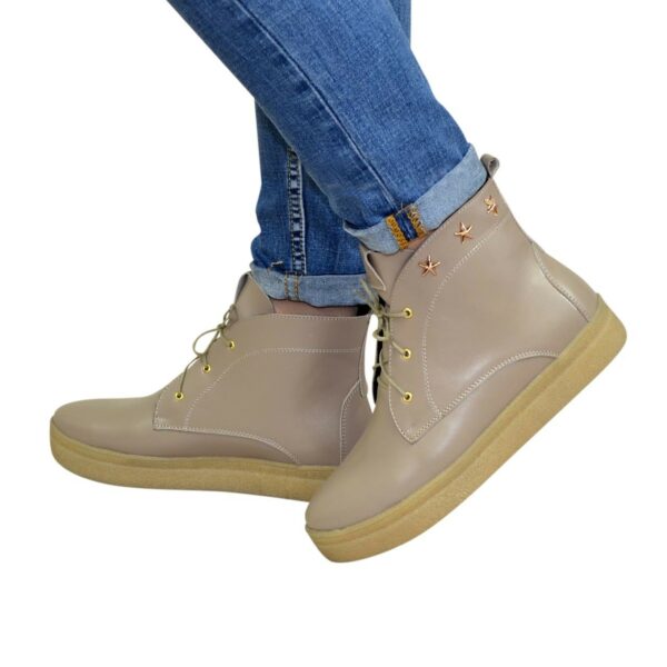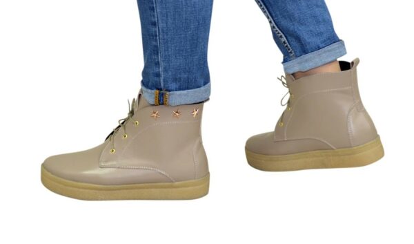 Стильные и модные женские ботинки на утолщенной сплошной подошве, изготовленные из натуральной кожи цвета визон, декорированные фурнитурой. На шнуровке, с помощью которой регулируется подъем. Очень удобные, идеально сидящие на ножке – отмечают Вашу индивидуальность.