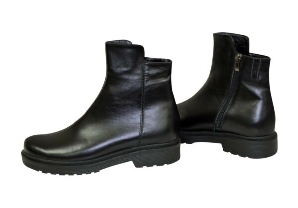 Классические женские ботинки на невысоком каблуке, изготовленные из натуральной кожи и цигейки черного цвета. Очень удобные, идеально сидящие на ножке.