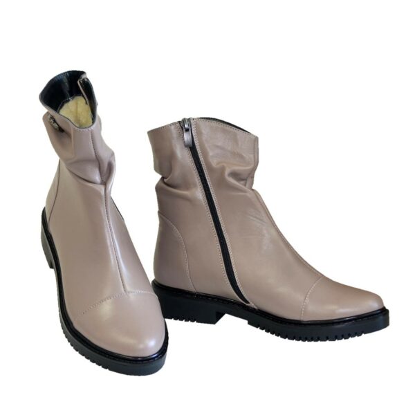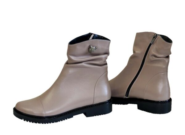 Стильные женские ботинки на утолщенной подошве, изготовлены из натуральной кожи, цвет визон. На молнии. Украшенные фурнитурой. Комфортные и аккуратные, идеально сидящие на ножке.