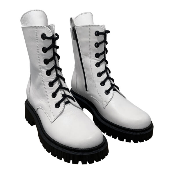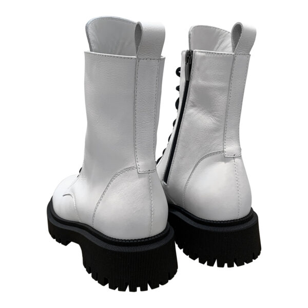 Молодежные женские ботинки на стильной подошве изготовлены из натуральной кожи белого цвета. На шнуровке. Очень удобные, идеально сидят на ножке.
