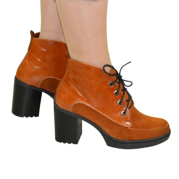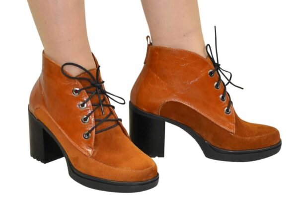Стильные и модные женские ботинки на стойком каблуке, изготовлены из натуральной кожи и замши рыжего цвета. На шнуровке, с помощью которой регулируется подъем. Очень удобные, идеально сидящие на ножке – отмечают Вашу индивидуальность.