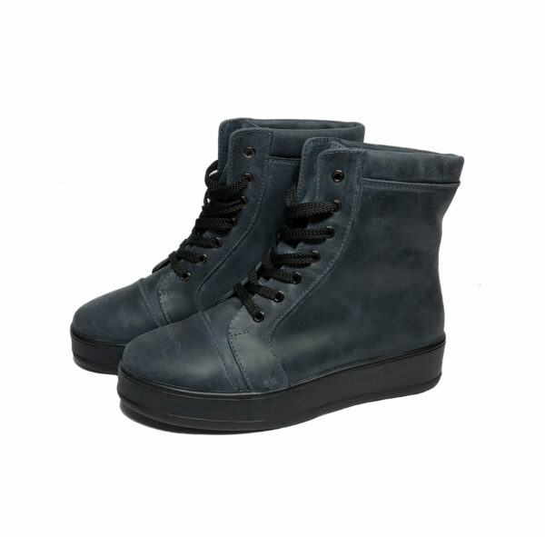 Стильные женские ботинки из натуральной кожи синего цвета на шнуровке. На утолщенной спортивной подошве
