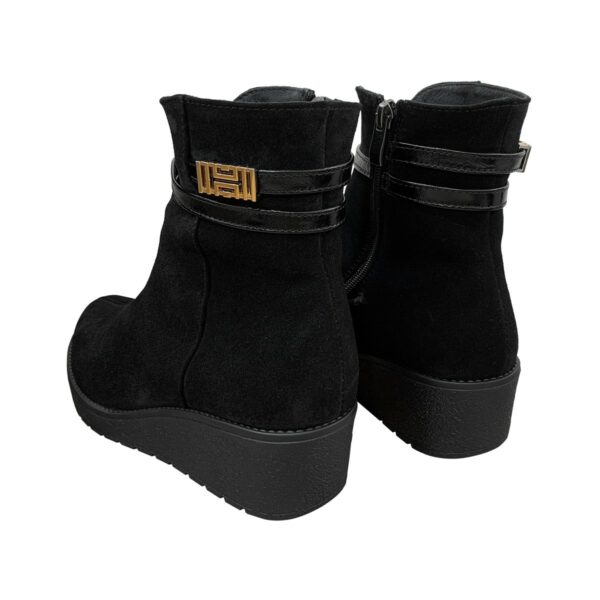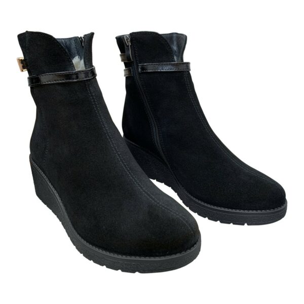 Модные женские ботинки на танкетке изготовлены из натуральной замши черного цвета. Незаменимы каждый день, очень удобны, идеально сидят на ножке – подчеркнут вашу индивидуальность.