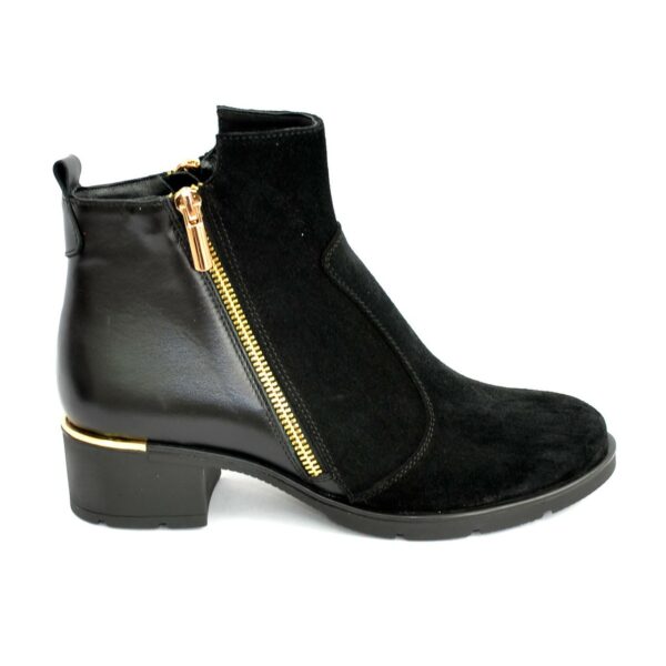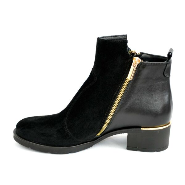 Классические женские ботинки на невысоком каблуке, изготовленные из натуральной черной замши и кожи. Очень удобные, идеально сидящие на ножке.