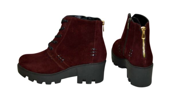 Стильные женские ботинки на шнуровке, изготовленные из натуральной замши бордового цвета, с помощью шнуровки регулируется подъем. Незаменимы каждый день, очень удобны, идеально сидят на ножке – подчеркнут вашу индивидуальность.
