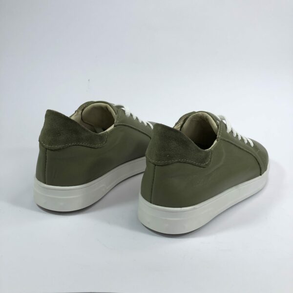 Стильные молодежные кроссовки из натуральной кожи оливкового цвета, вставка из замши оливкового цвета, на облегченной подошве. Изготавливаются только из натуральных материалов. Полномерные соответствуют стандартной сетке размера. Возможен отшив в коже и замши разных цветов – учитываем любые пожелания заказчика