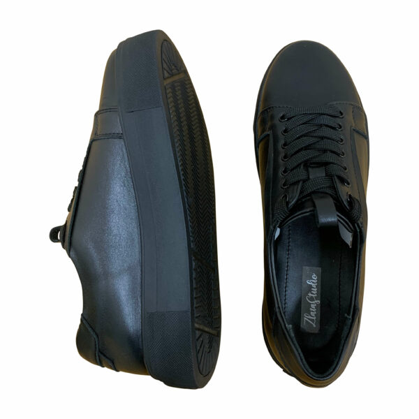 Стильные молодежные кроссовки из натуральной кожи черного цвета на облегченной подошве. Изготавливаются только из натуральных материалов. Полномерные соответствуют стандартной сетке размера. Возможен отшив в коже и замши разных цветов – учитываем любые пожелания заказчика